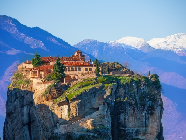 Eerst nog een lus via Meteora, met unieke zichten op de Griekse kloosters op de bergtoppen. Op de grens van het Pindos-gebergte en de Thessalische vlakte verheffen zich deze kegelvormige pieken, waarboven in de late Middeleeuwen kloosters werden gebouwd.